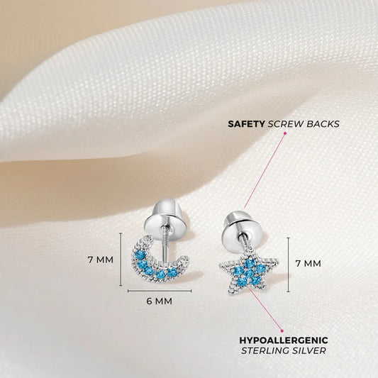 Star & Moon CZ Girl Earrings