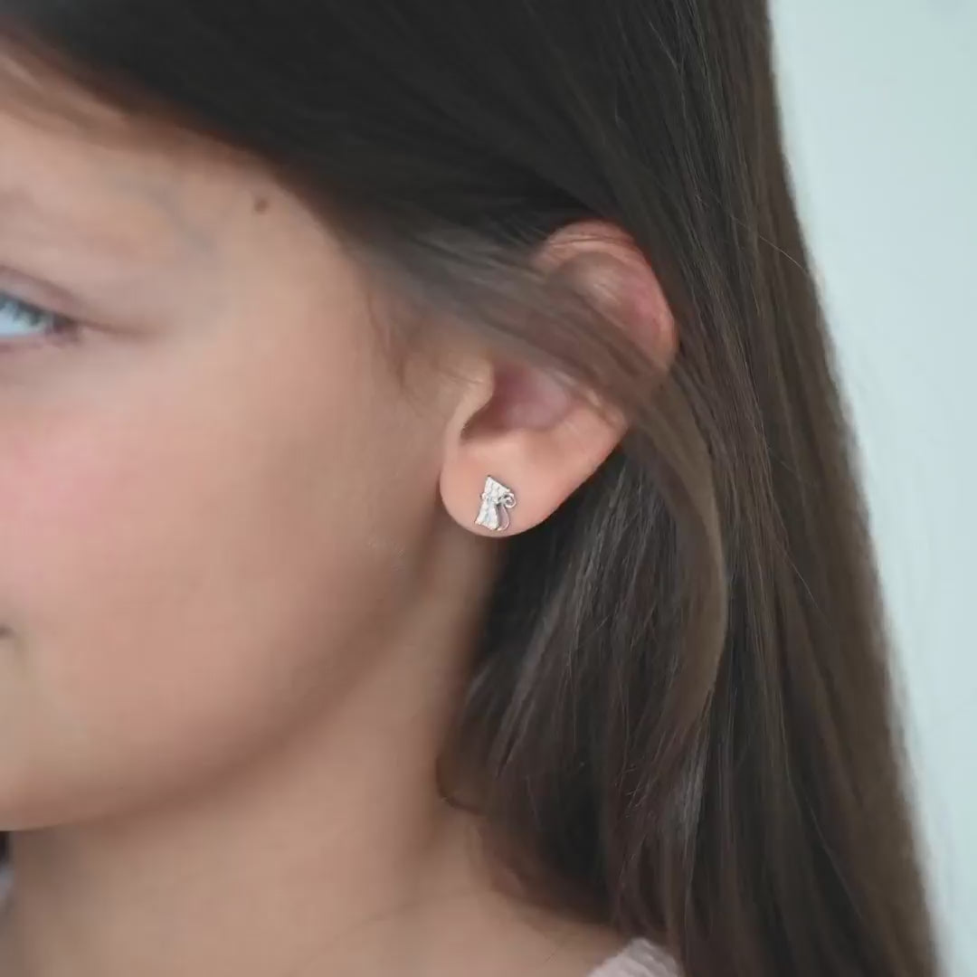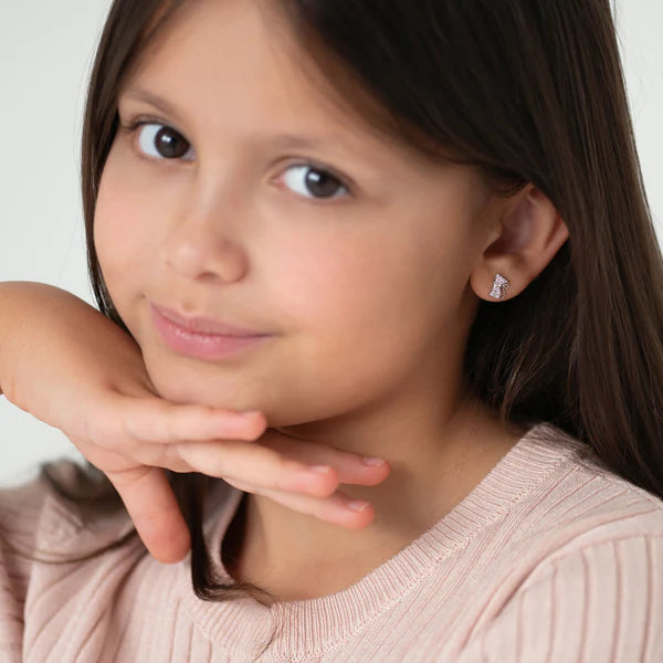 These adorable pink cubic zirconia kitten screw back earrings are perfect for any little girl or animal lover. Made entirely of 925 sterling silver and pink cubic zirconia. These are hypoallergenic and safe for children with sensitive ears. The posts are threaded and feature a safety back system to ensure your child's earrings stay comfortably in place. An ideal gift for birthday or a special occasion of a loved one. Window Box is included.
