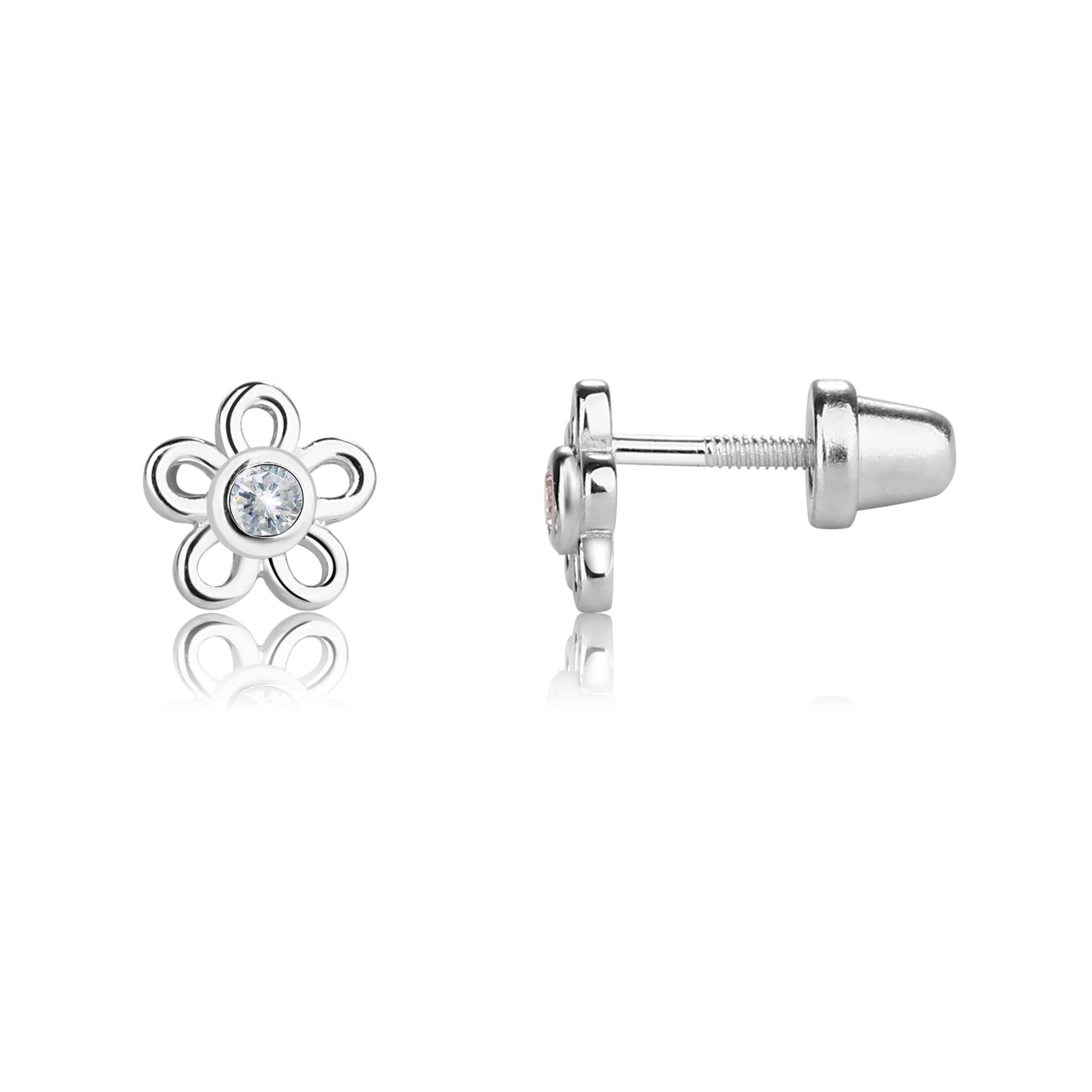 Celebrate the charm of nature with the Blossom Sparkle Flower Stud Earrings. Featuring an elegant open-petal floral design crafted in premium sterling silver, these studs are centered with a brilliant zircon stone that catches the light beautifully. Designed for comfort and elegance, these earrings come with a secure screw-back closure, making them perfect for everyday wear or a thoughtful gift.